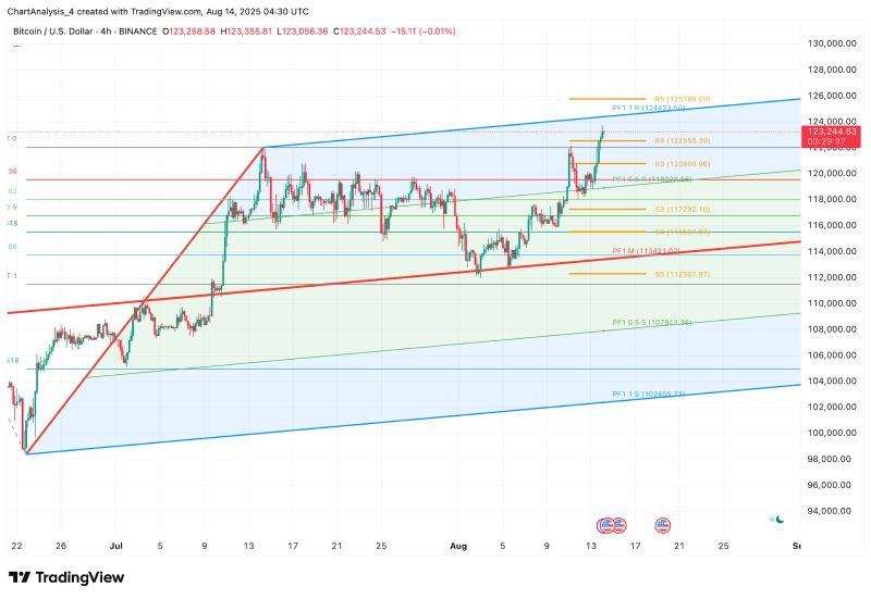 如果比特币价格维持在123,000美元上方的势头,那么最值得关注的阻力位是124,223美元(通道阻力位和枢轴汇合点)。突破该区域后,比特币价格可能加速上涨至126,785美元,而128,000美元将成为下一个流动性磁石。