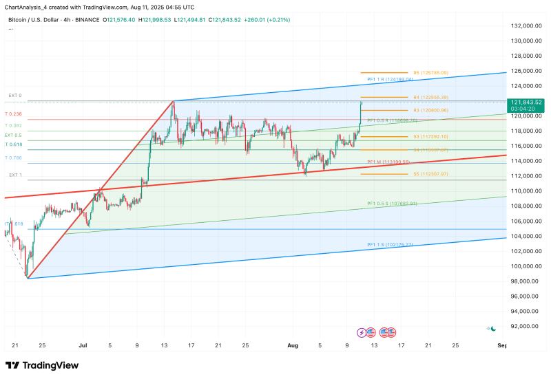 从技术面来看,4 小时 20/50/100/200 EMA 呈现看涨趋势,其中 20 EMA 位于 120,467 美元,提供即时动态支撑。此时间范围内的布林带正在急剧扩张,确认了波动性突破阶段。BTC 价格也突破了 R4 枢轴阻力位 122,556 美元,下一个主要目标位位于 R5 附近,即 126,785 美元。