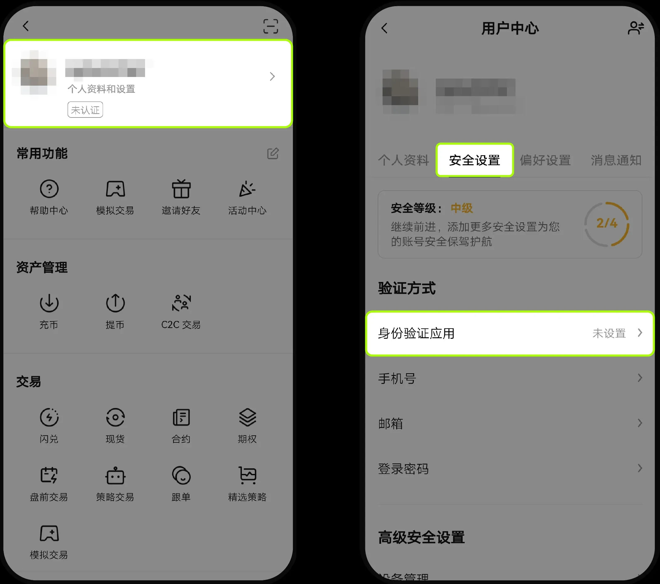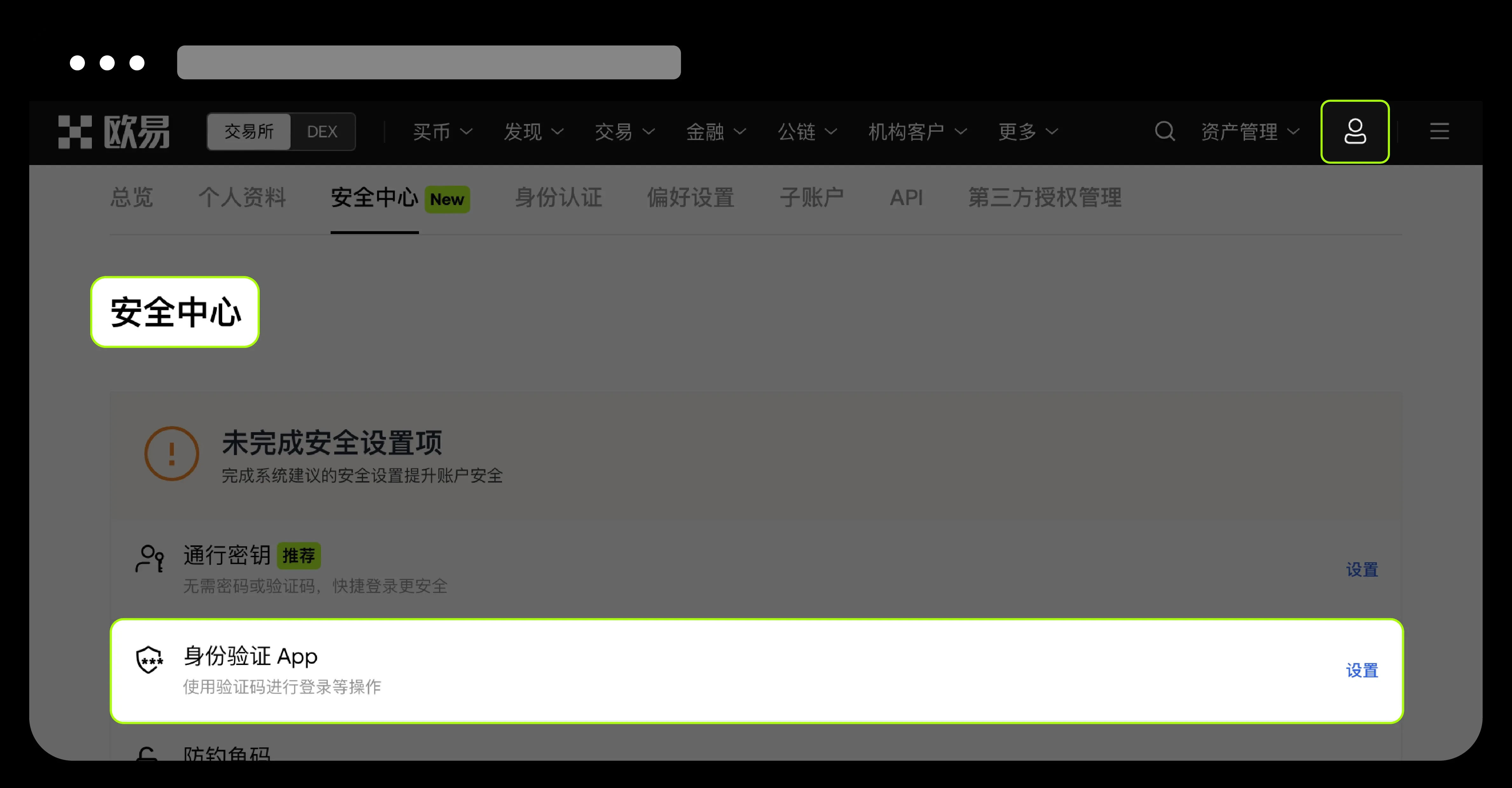 开放官网,点击右上角【】人物图标-【安全中心】-【身份验证App】即可设置身份验证应用。您可以通过手机,根据需要,扫描二维码,下载不同的身份验证应用App。