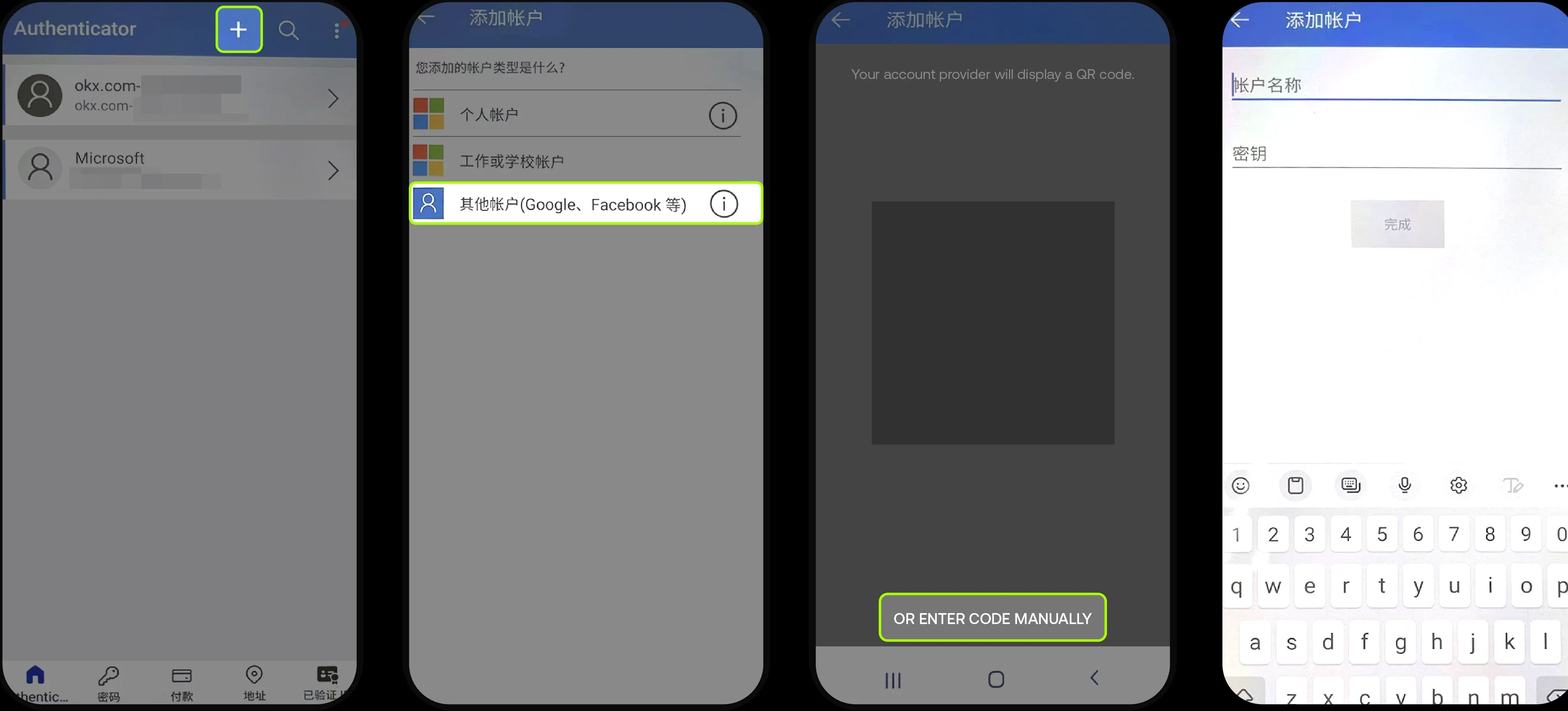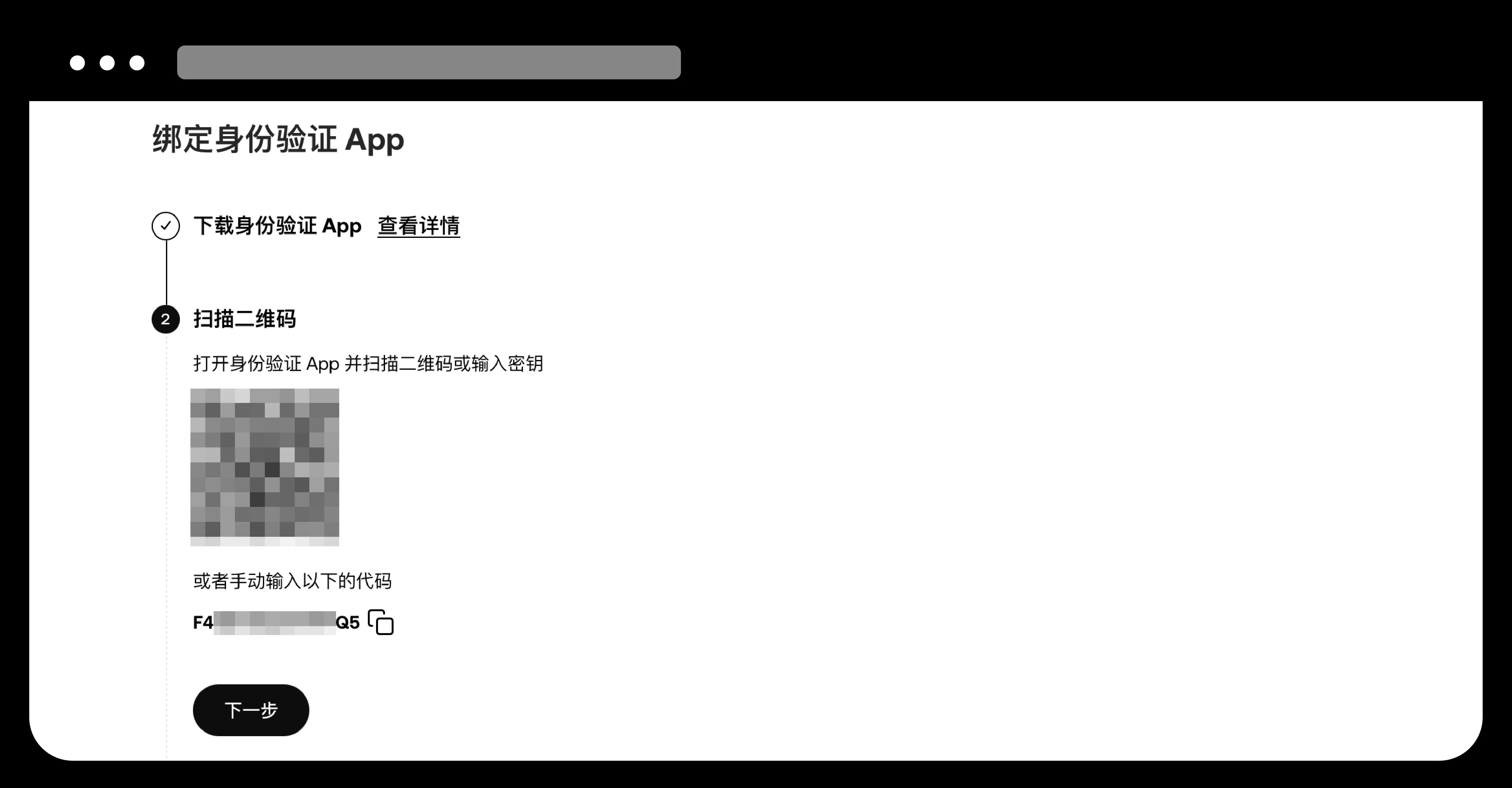 1.您在手机端完成身份验证App的安装后,可以使用身份验证App,扫码绑定身份验证App第二步中的二维码,或者复制粘贴页面的显示代码,完成新账户的添加。