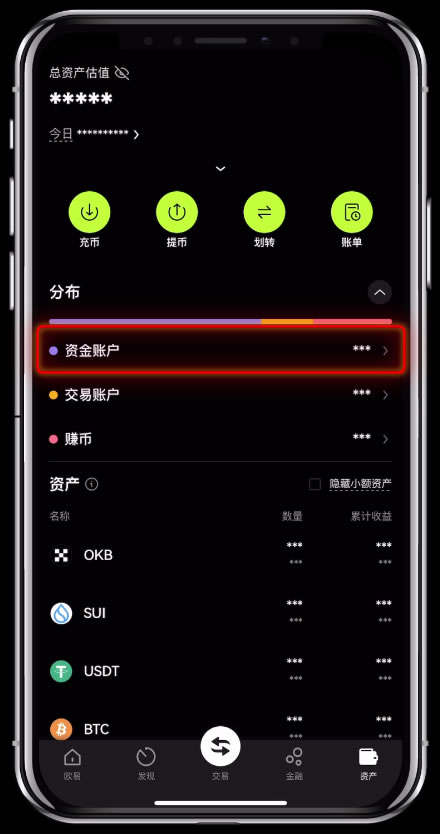 资金账户:主要是用来进行C2C、赚币金融产品等