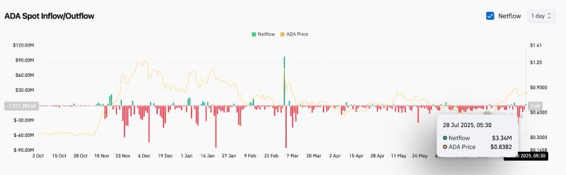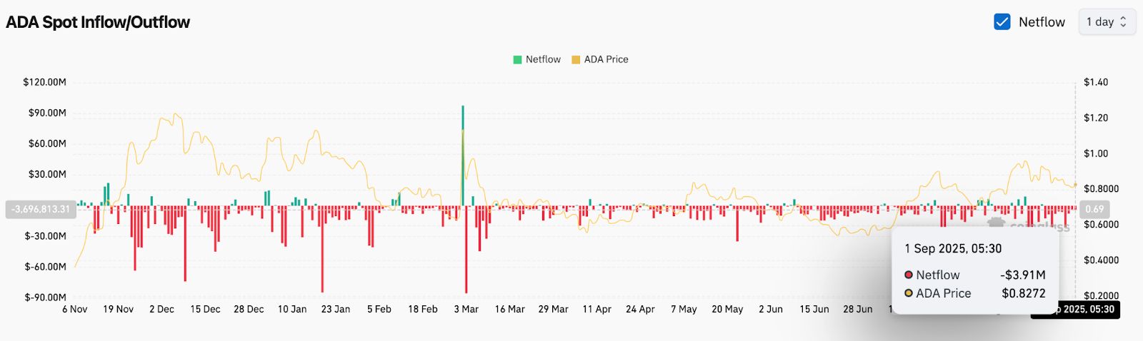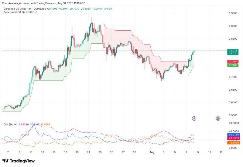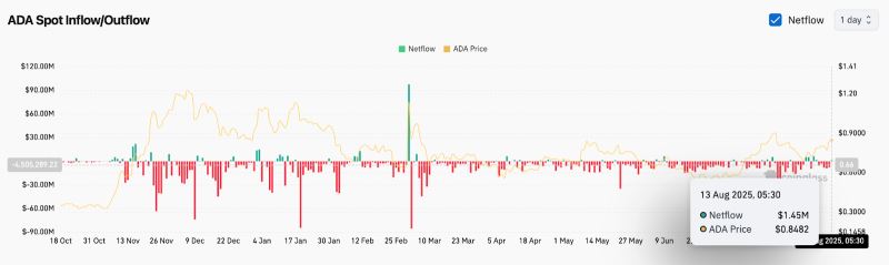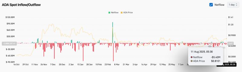 如果ADA突破0.87美元并得到成交量确认,则可能上涨至0.91美元和0.94美元,预示短期趋势转变。然而,如果未能守住0.80美元,市场人气将偏向看跌,暴露出0.75美元附近的更深支撑位,并延缓任何反弹尝试。