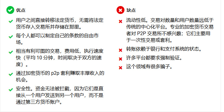 点对点交易是指加密货币与法定货币或反之亦然的交换,其中付款直接在用户之间进行,并且法定资金不存储在交易平台上。