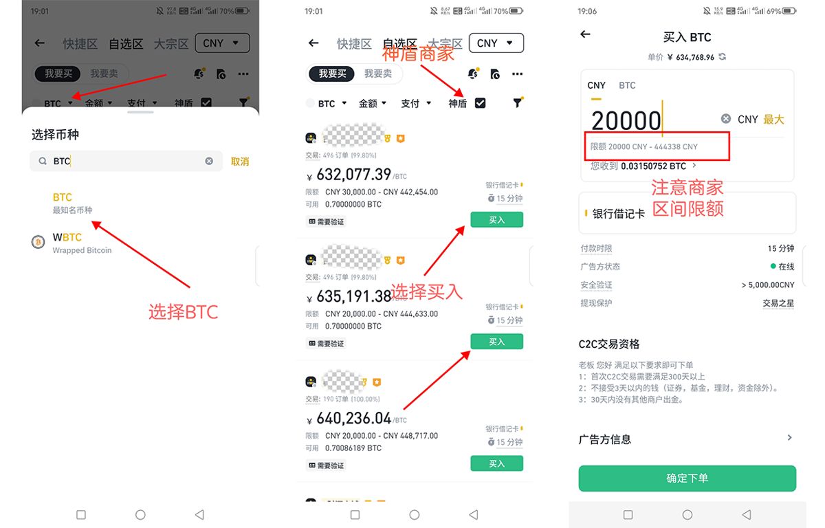 注意:由于比特币是价格较高的货币,每个卖家所卖的限额也有所不同。在购买前请选择支持购买的额度限价,列如你想购买2w,可以选择支持1w~4w限价之间的商家。