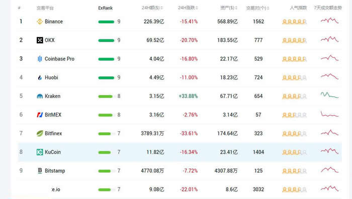 许多交易所都提供比特币的交易服务,以下是小编根据币圈最新数据整合的2023年比特币十大交易所及其排名情况,具体信息如下: