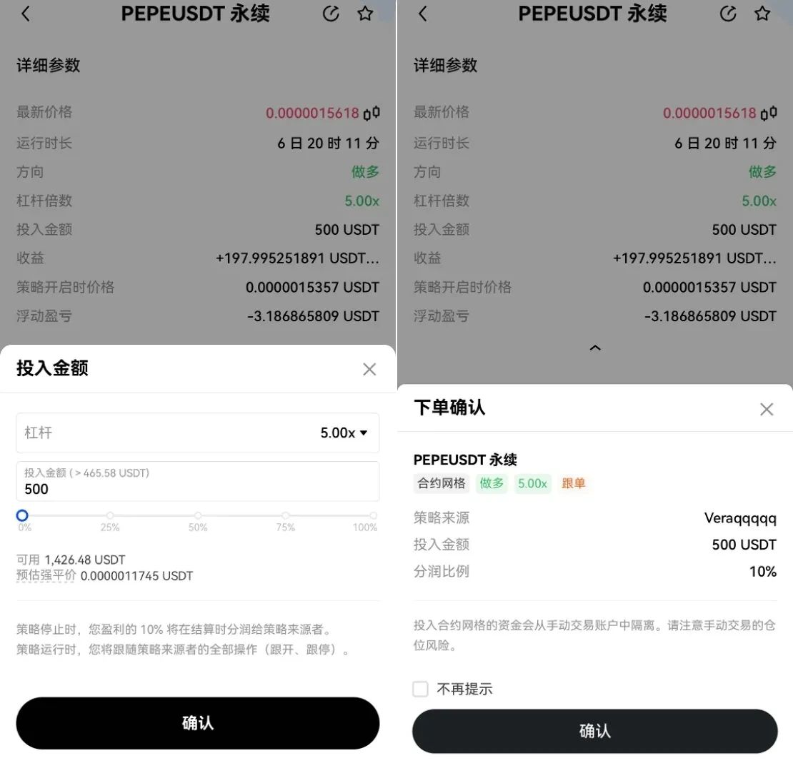如果想要跟单,输入投入金额,并点击创建策略即可。