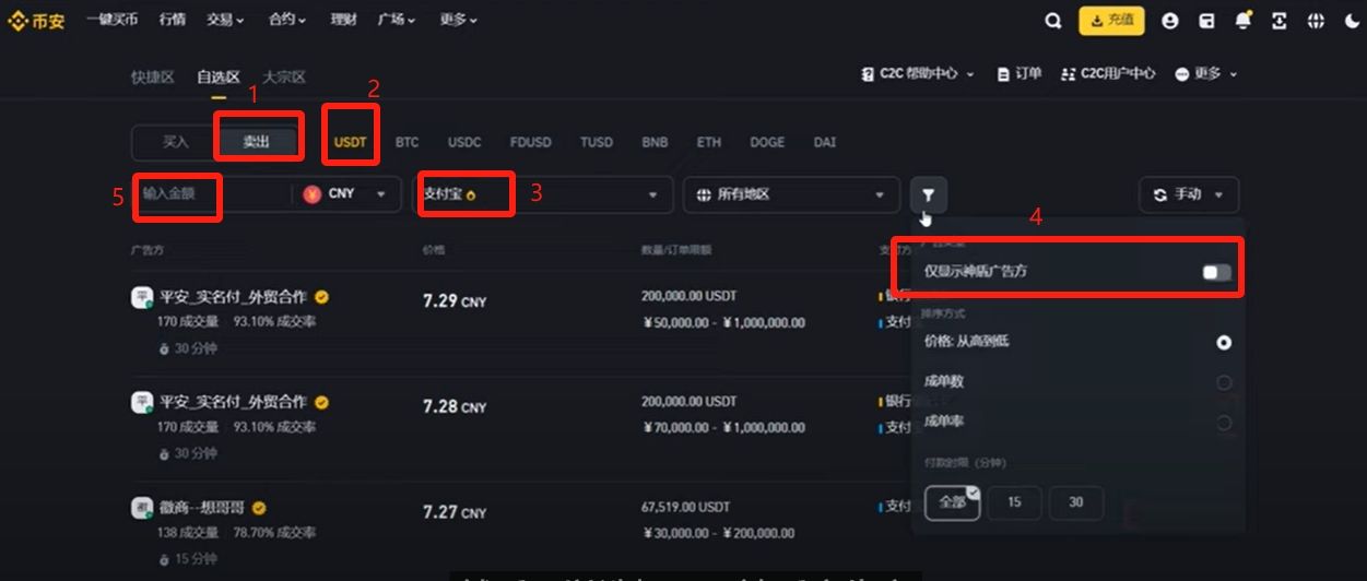 你可以看到商家的昵称、订单完成率、平均放币时间以及他们支持的支付方式(如银行卡、支付宝、微信等)。选择一个完成率高、评价好、且支持你常用支付方式的商家。