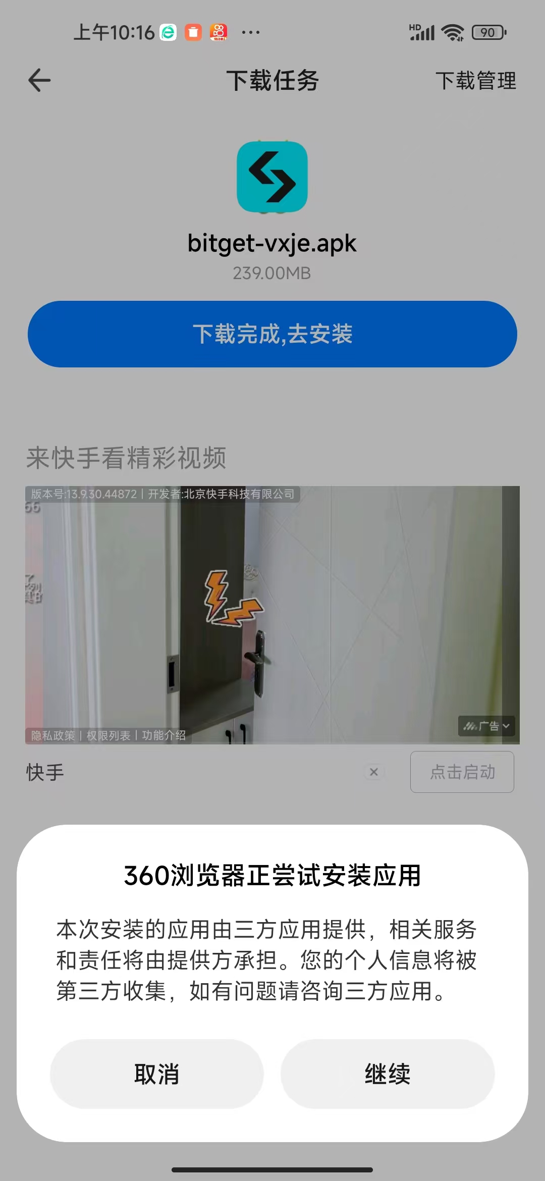 7.等待安装完成,某米手机安装 Bitget比较麻烦,请谨慎选择。