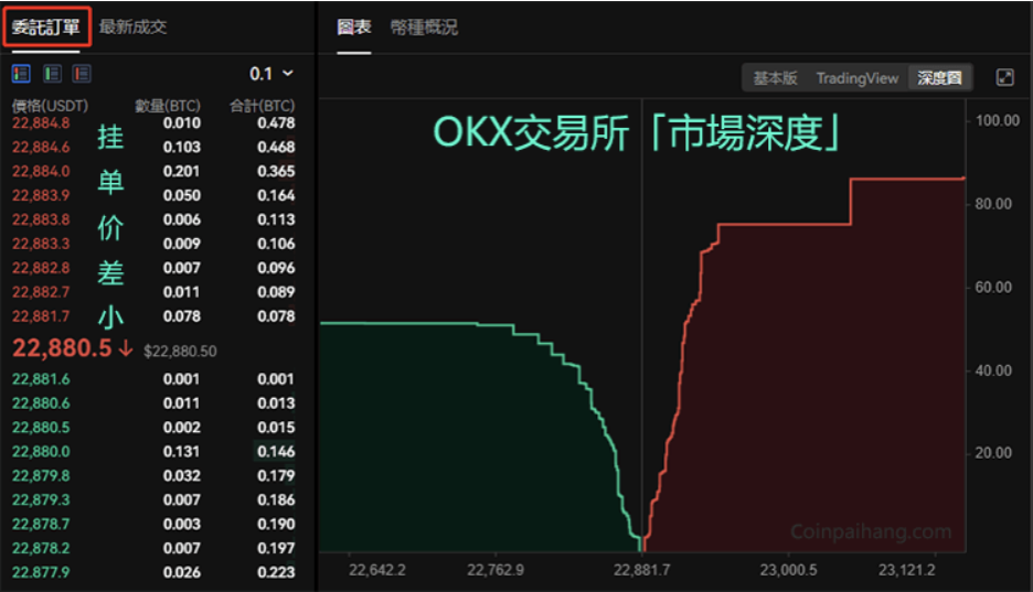 交易所的市场深度决定了你的交易成本,流动性好的交易所往往「滑动点低!,有经验的投资者非常关心这一滑动点的价格差异。