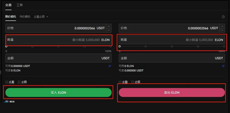 12、输入买入ELON数量,点击买入ELON就可以了;输入卖出ELON数量,点击卖出ELON就可以了
