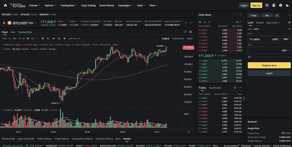 Binance提供大量流动性、行业领先的合规性和机构级执行。每日期货交易量超过 790 亿美元,涉及 615 种永久合约,涵盖美元保证金(USDT、USDC)和 COIN 保证金市场。