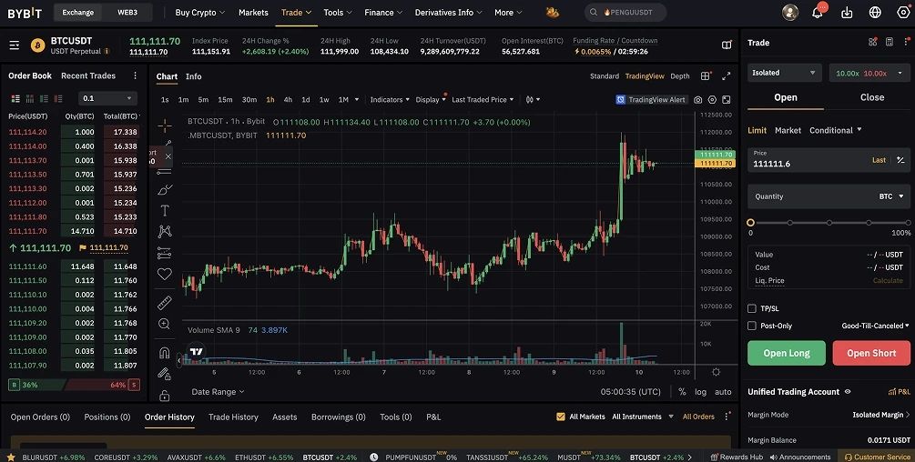 根据我们的测试,Bybit凭借其一流的流动性、灵活的杠杆、有竞争力的费用和广泛的市场覆盖范围,成为顶级永续期货交易所。每天的期货交易量经常超过 400 亿美元,729 种合约的订单量很大。其统一交易账户通过现货、期货和期权之间的交叉保证金提高了资本效率。