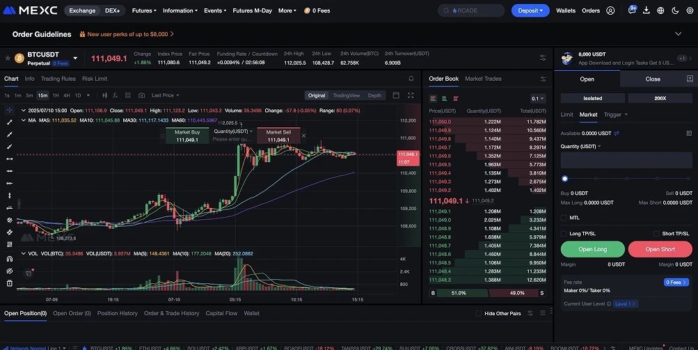 MEXC在永续期货交易所中脱颖而出,提供行业领先的高达 300 倍的杠杆率,吸引了喜欢高风险、高回报头寸的交易者。该平台列出了 780 多份永续合约,日交易量接近 250 亿美元,即使是不太常见的交易对也能确保流动性。