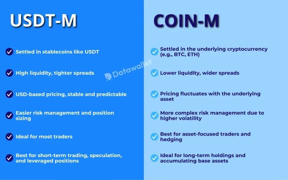 硬币保证金合约直接以 BTC 或 ETH 等加密货币结算,吸引了对冲或积累基础资产的交易者。加密货币价格上涨会增加抵押品价值,使长期持有者受益。不过,Coin-M 合约通常流动性较低,价差较大,波动风险较大。
