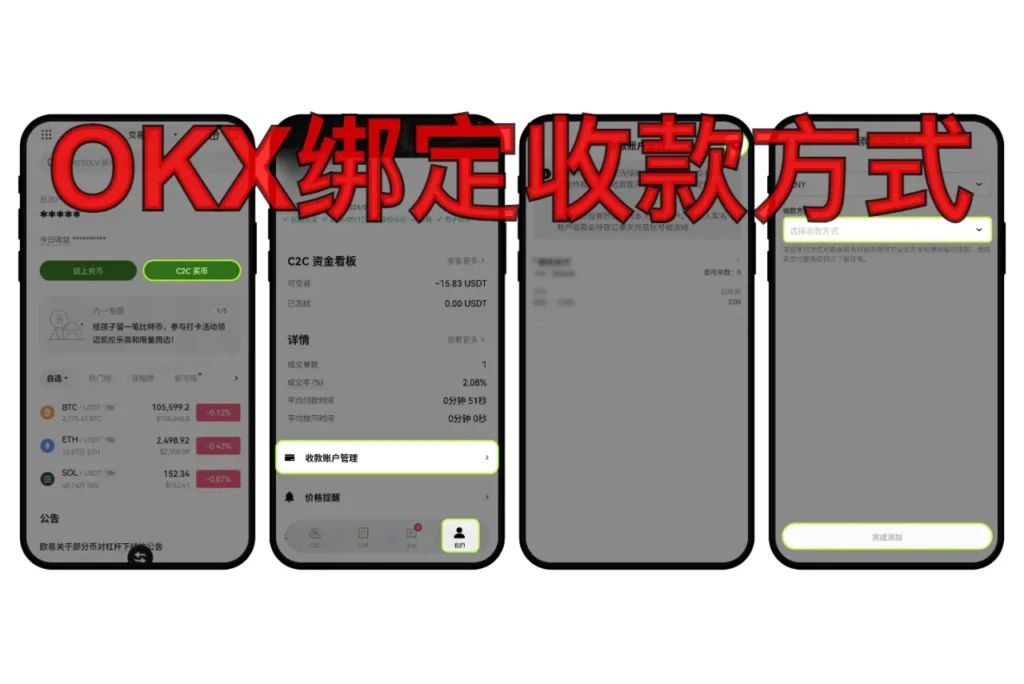 最简步骤:先完成实名认证→进入“收款账户管理”→点“+”添加→选CNY→选择“银行卡/支付宝/微信”→按提示填真实一致的信息→提交并验证。App 走“C2C买币→我的→收款账户管理”;网页走“买币→C2C买币→个人中心→收款账户管理→添加收款账户”。全程只用官方App/官网,信息务必与实名一致。