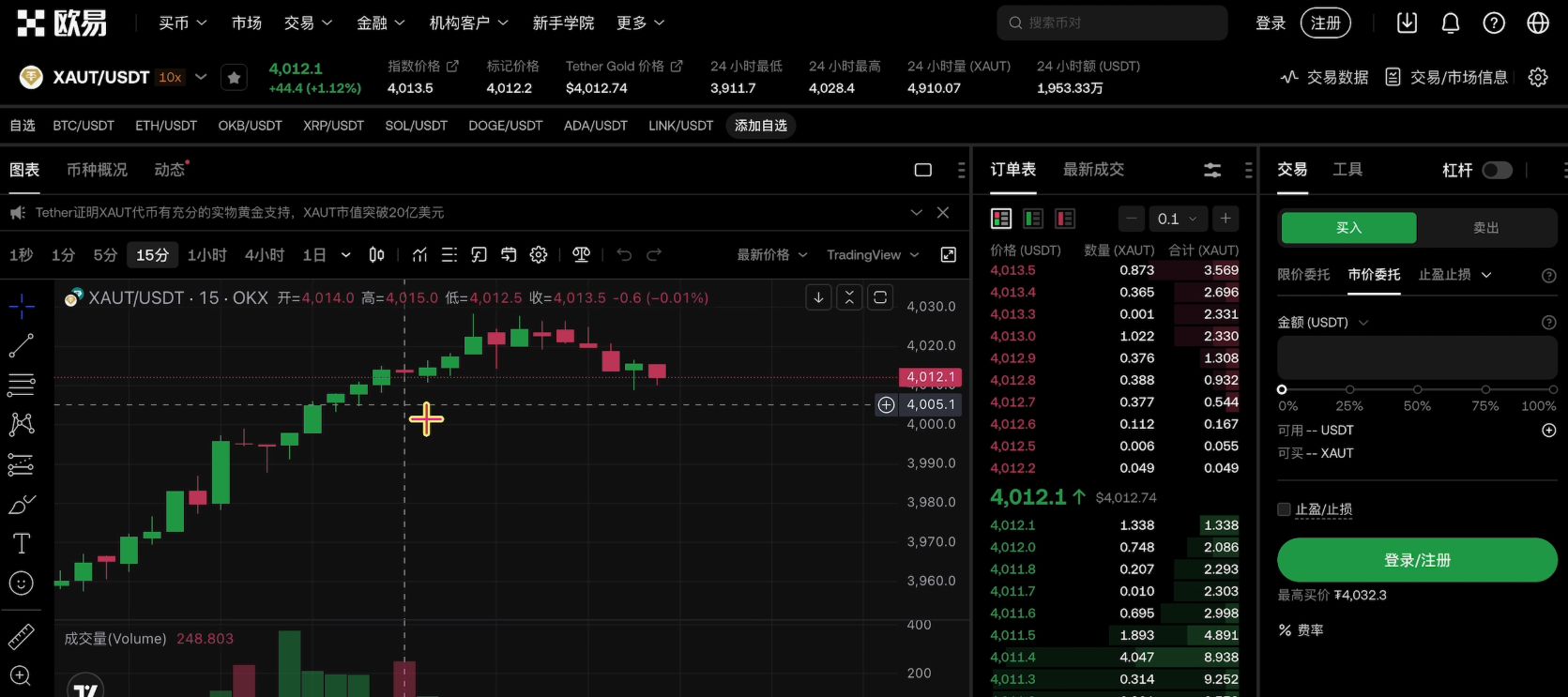 如果你想做空黄金,就可以直接做空XAUT这个标的。大家都知道USDT是泰达公司发行的1:1的数字稳定币。泰达公司现在估值高达5000亿美元,甚至超过了open AI,所以USDT的安全性就不用质疑了。一个XAUT代表了一盎司的黄金,你买的每一个XAUT泰达公司都有真实的一盎司的黄金现货储备,所以这就是真实的数字黄金。