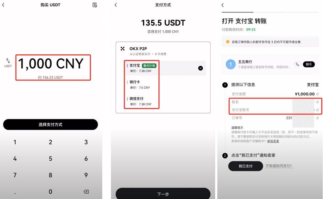 然后你根据商家需要的收款信息进行付款,通过支付宝、微信或者是银行都可以。完成付款之后,平台会把商家的币放给你。binance在其中它其实并没有参与交易。它只是类似于一个支付宝的作用,撮合双方完成买U的交易。