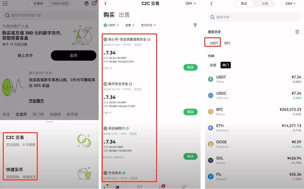 怎么用binance交易所来买比特币呢?进入APP之后,我们要做的第一件事,不是直接去买比特币,而是先去买USDT。