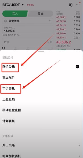 选择下单方式,这里主要用到的是限价委托和市价委托。