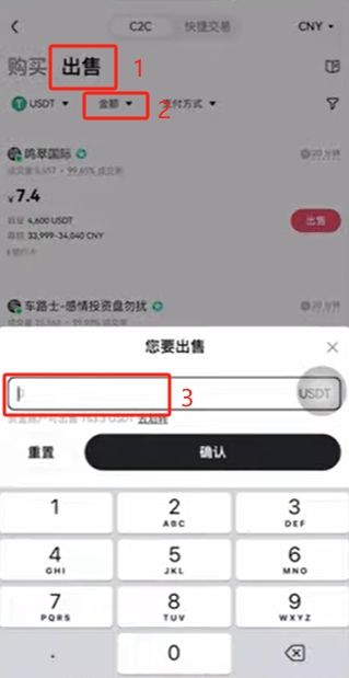 上方选择【出售】,输入USDT的数量进行出售就可以了。