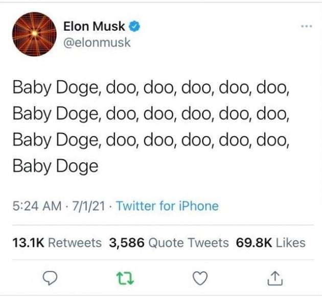 Baby Dogecoin 推出后不久,“狗狗币之父”埃隆·马斯克在推特上谈到了这种网络迷因币,出人意料地助推了它的流行。