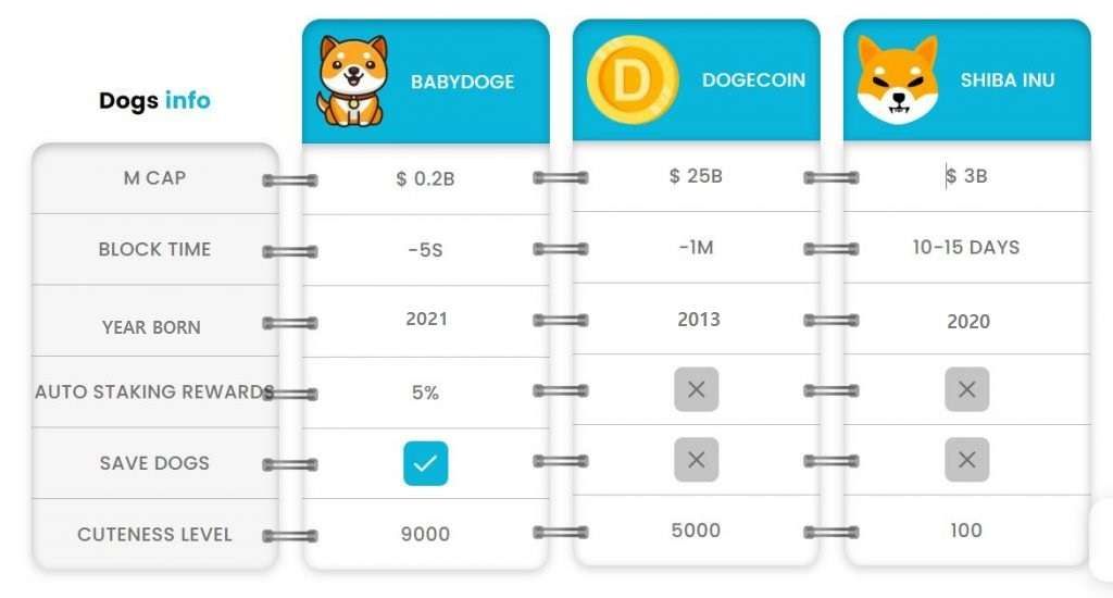 Baby Doge最大的项目是NFT市场。该项目优先考虑伴侣犬的福祉,并积极联系收容所和支持它们的组织。其目标是帮助拯救尽可能多的狗狗。