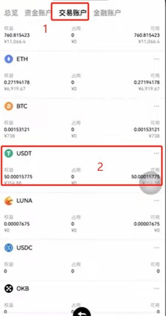 接下来我们点击进入交易账户里面看一下。下方就有我们刚才划转进来的50个USDT。