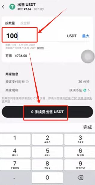 上方选择【出售】,输入USDT的数量进行出售就可以了。