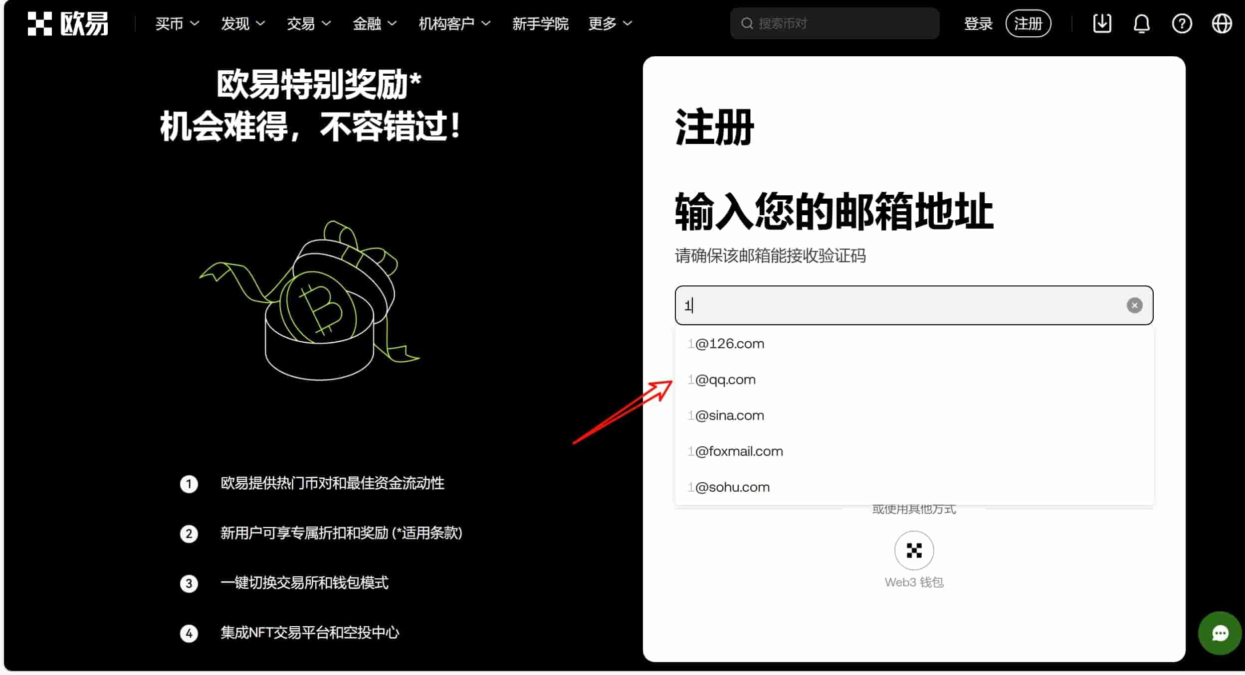 这里随便使用QQ邮箱或者国内外的任何邮箱都是可以注册的。推荐码这里,如果你打开本文顶部的链接,它是自动填写上的。如果没有你可以手动填写:jbzj999,这样就能够享受手续费返现。然后勾选服务条款,点击下一步,按照它的流程进行接下来的注册以及身份认证就可以了。认证的时候直接使用中国大陆的身份就可以认证。