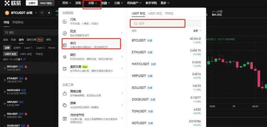 1、打开binance(官方注册 官方下载),选择交易,点击合约,并选择要进行币种,例如BTC。