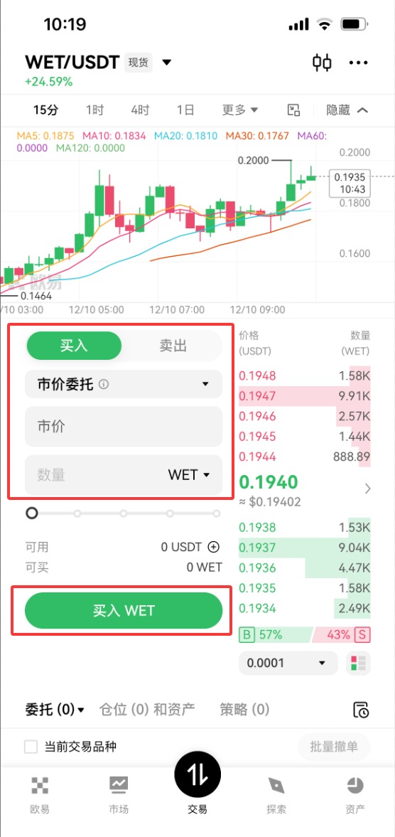下面将为大家详解binance币安 app购买WET币操作步骤教程。