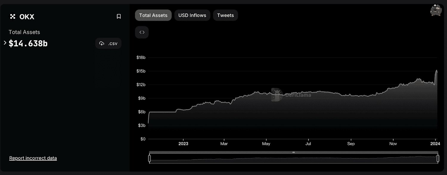 第二种方式是从 Defillama CEX Transparency 查看较即时的链上信息,可以特别关注比特币、以太币、稳定币这些主流币别的流出情形,是否有大幅波动。