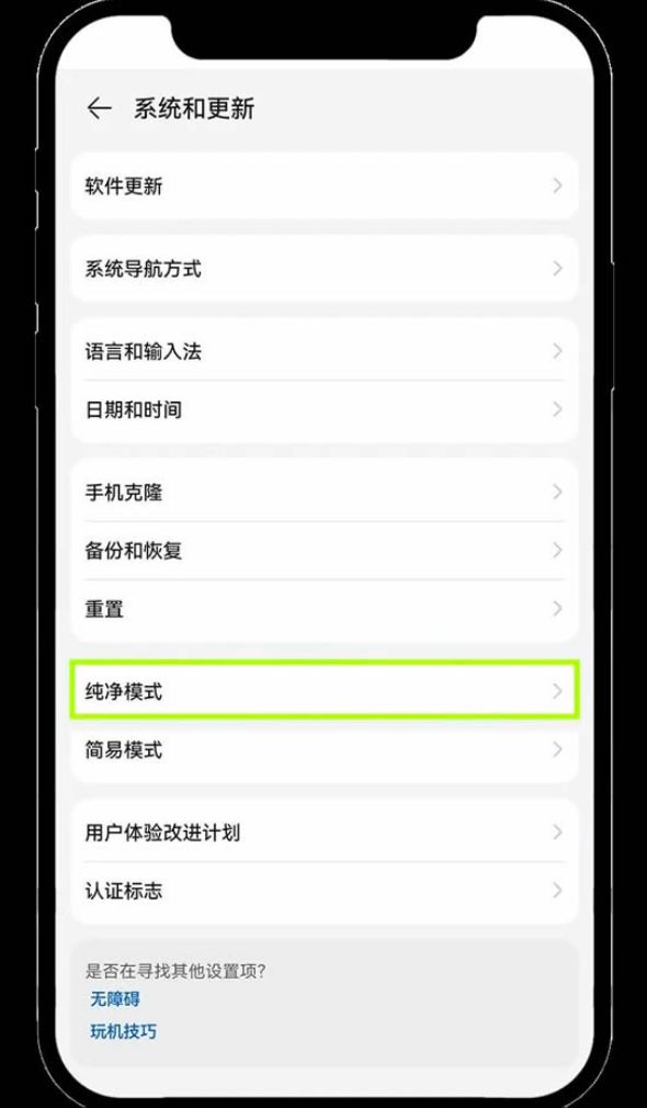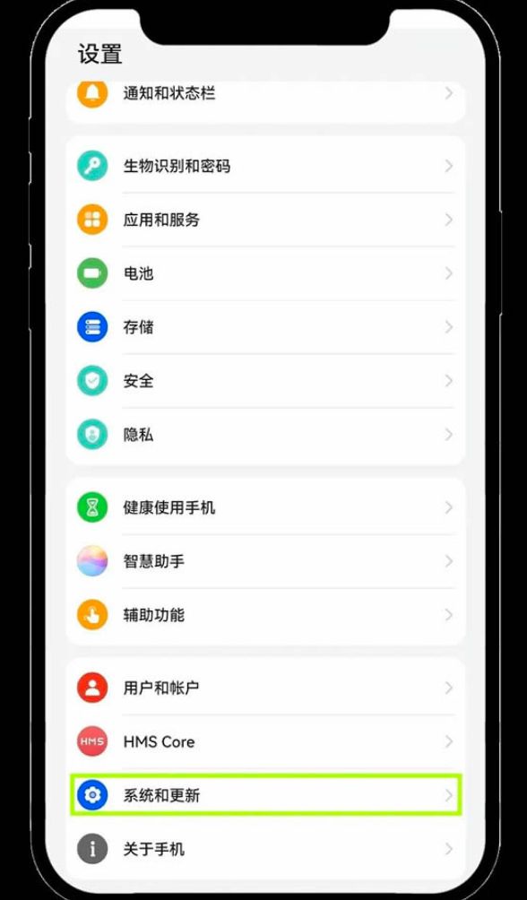 1、方法一:关闭纯净模式与外部应用检查。首先,进入手机【设置】,然后找到并点击【系统和更新】。