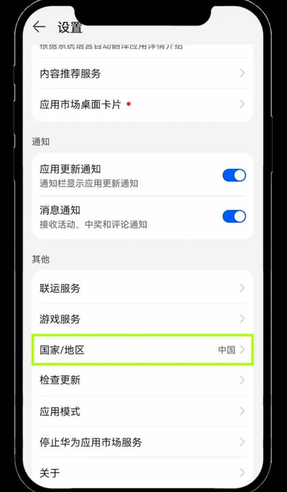8、在设置菜单中,找到并选择【国家/地区】选项。