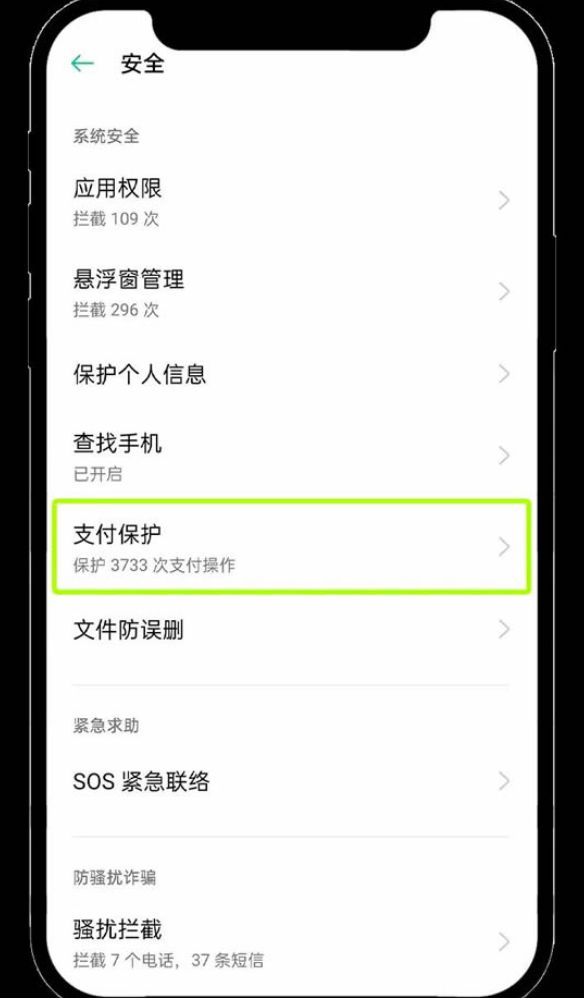 4、OPPO手机:进入手机自带的【手机管家】应用,点击【支付保护】功能。