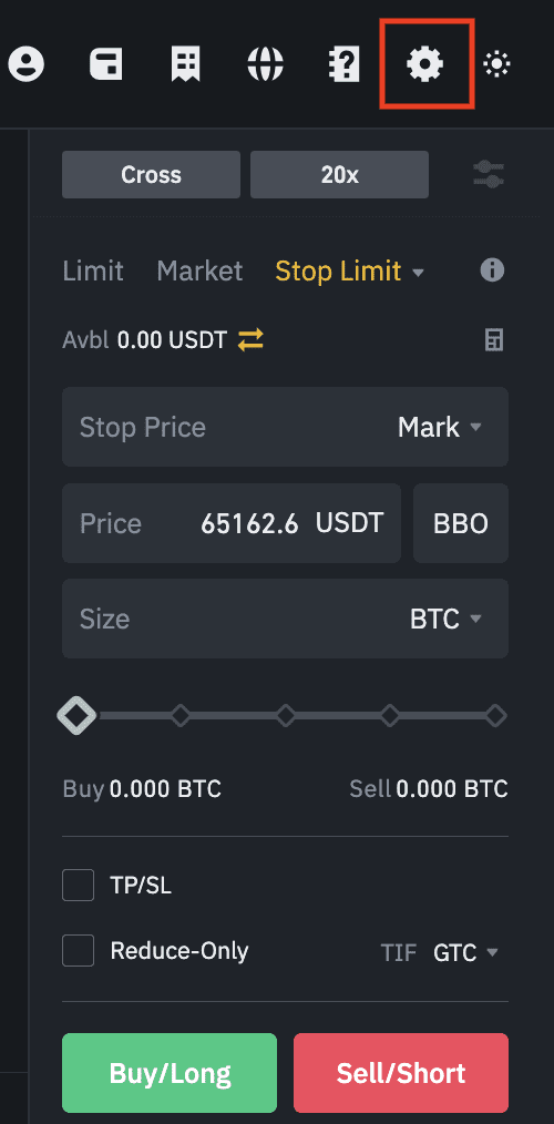 1. 前往 U 本位合约交易界面,然后点击设置图标。