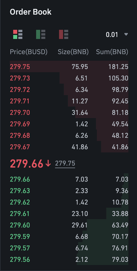 | 当下最新成交价 | • 红色代表卖的人很急,愿意接受比较低的价格去吃掉买的人挂的单→ 如果一直是红色,代表很多人想快点卖掉,价格下跌 • 绿色代表买的人很急,愿意付更高的价格去吃掉卖的人挂的单→ 如果一直是绿色,代表很多人想快点买入,价格上涨 |