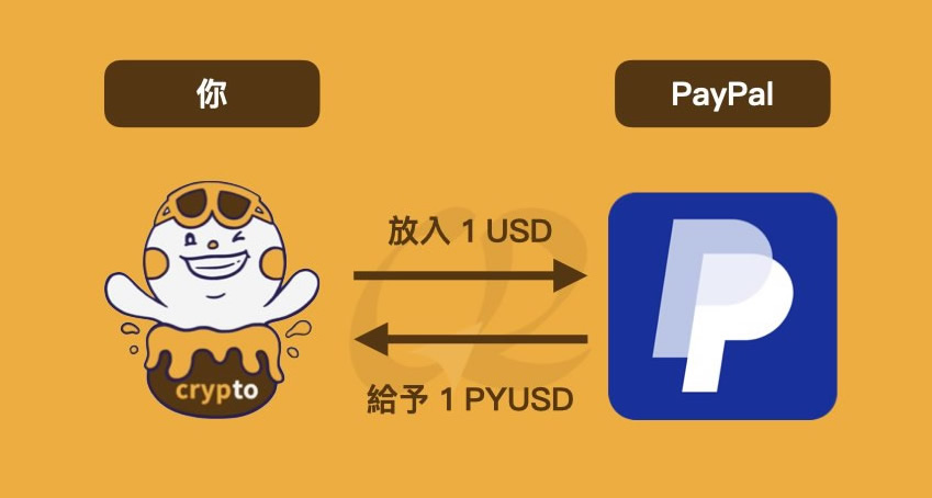PYUSD的运作方式是每当用户用1 美金兑换1 PYUSD,PayPal 便会发行1 PYUSD,同时妥善保管收到的美金,相反地当用户交付1 PYUSD 时,PayPal 也会归还1 美金。