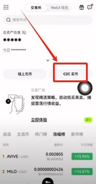 认证完成之后就可以在binance尽心购买币交易了。回到binance首页,点击【C2C买币】。