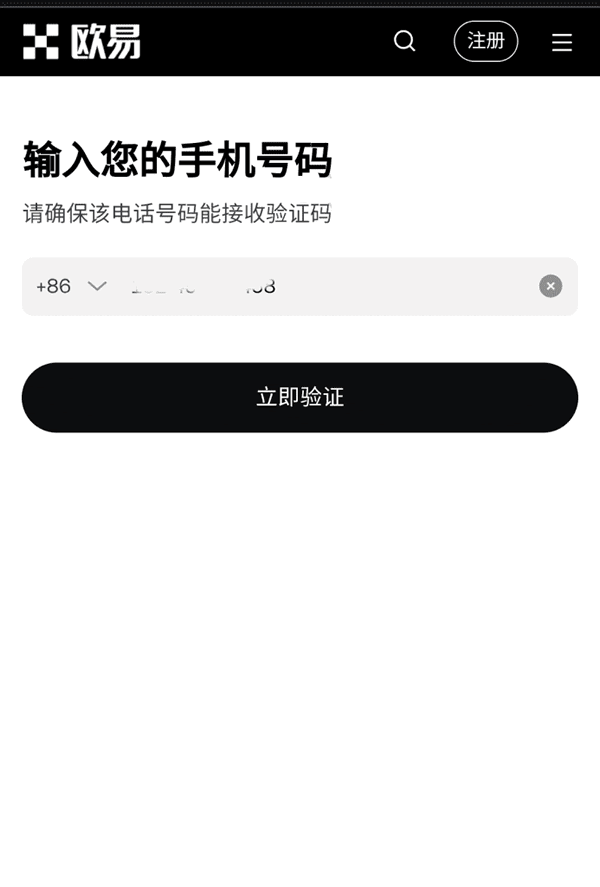 2.选择区号,输入手机号,点击“立即验证”。