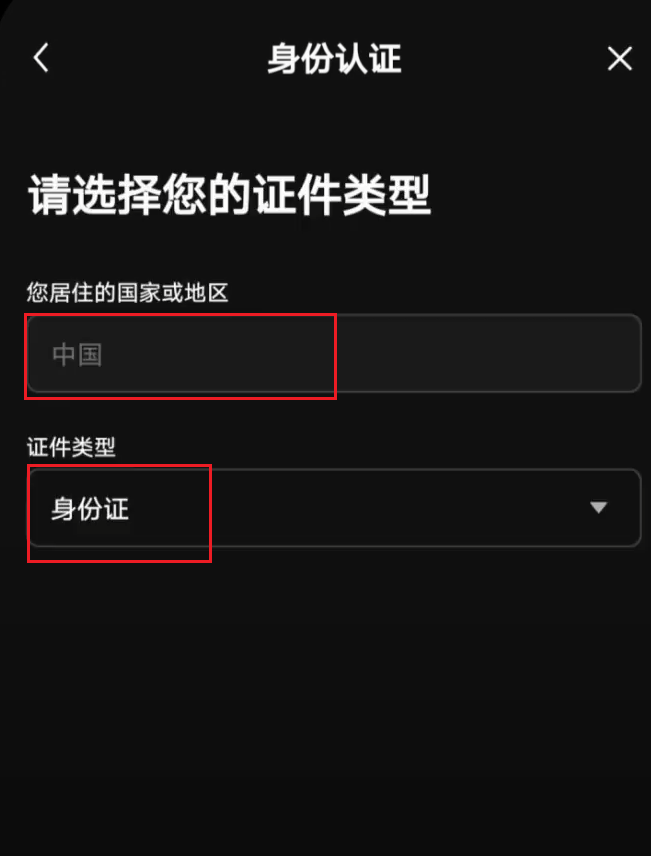 2.选择居住国家和证件签发国家,证件类型,推荐【身份证】。