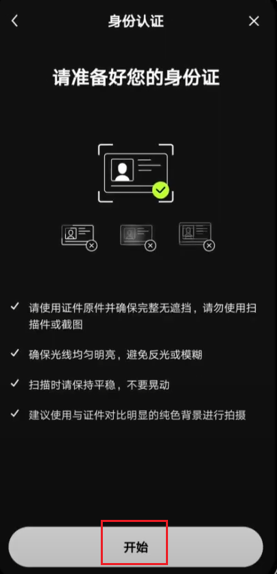 3.上传证件照片,点击【开始】