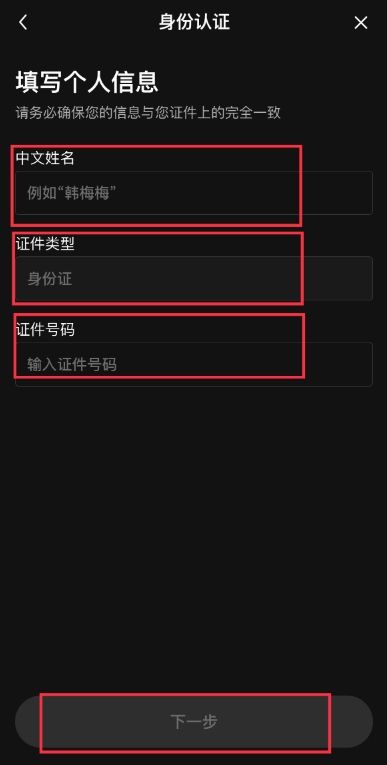 需要注意的是,这里一定要填写真实的身份信息,否则后面的人脸识别就无法进行,不能通过了。