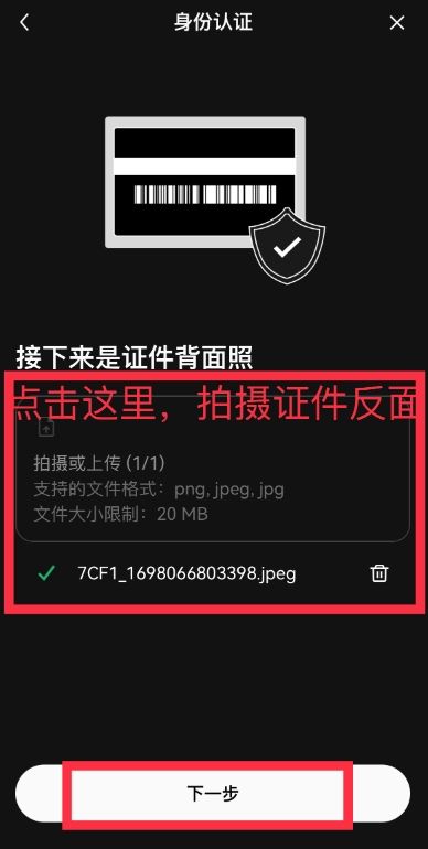 4.根据系统要求对身份证件的正面(人像面)进行拍摄。点击“下一步”。