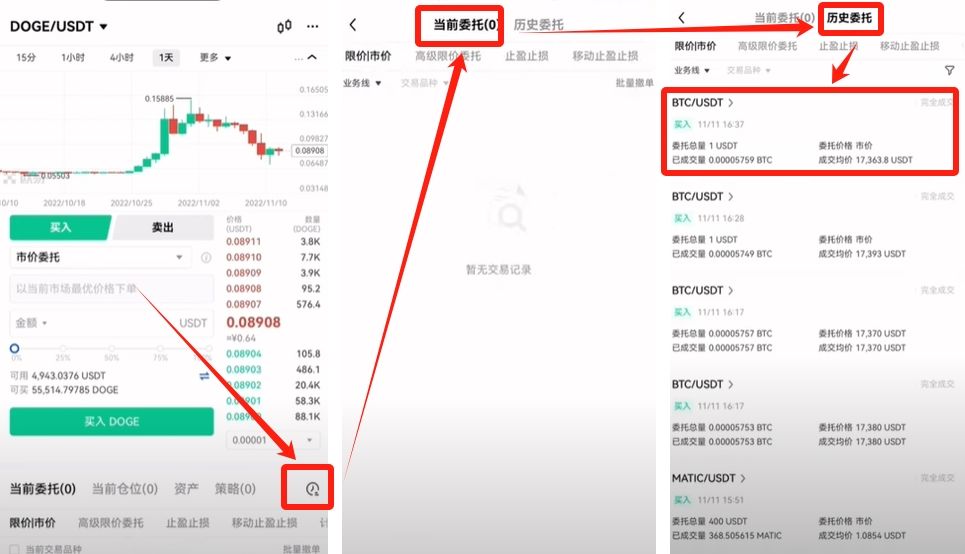 比如说忽然某个币暴涨了,你怕买不上了 ,你就把限价委托切换到市价委托,因为他默认是限价委托的,我们把它切换到市价委托,然后马上买进去就能买到了。或者忽然暴跌了,你手上有个币要跑掉了,就直接切换到事件委托点击卖出,就可以直接可以卖掉了。