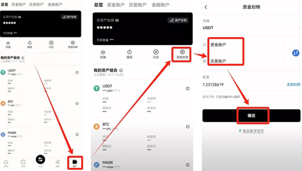 今天教大家如何在binance(币安)交易所进行现货交易。首先我们点击首页右下角的“资产”,上方选择“资金划转”,比如说你刚在binance(币安)市场里买了U,一般买了之后就在资金账户的,需要把它转到交易账户来,点击【确定】。U在交易账户才能进行买卖,买卖各种加密货币的。