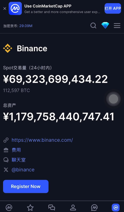首先是币安(官方注册 官方下载),它是全球交易量最大的平台,市场份额常年占据40%以上。