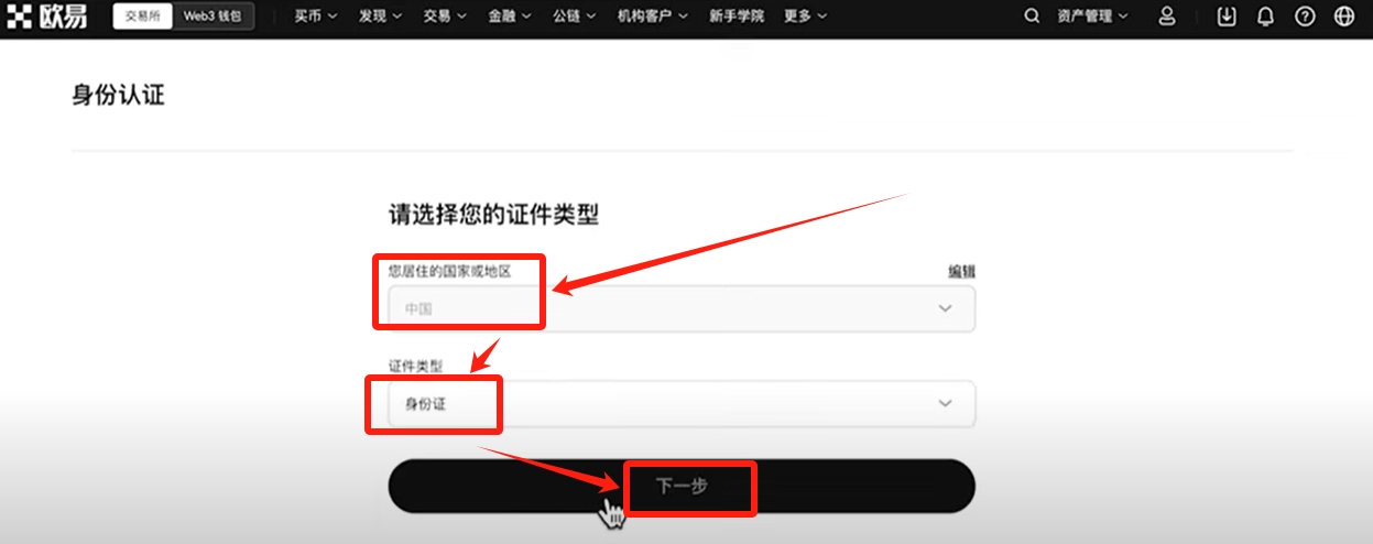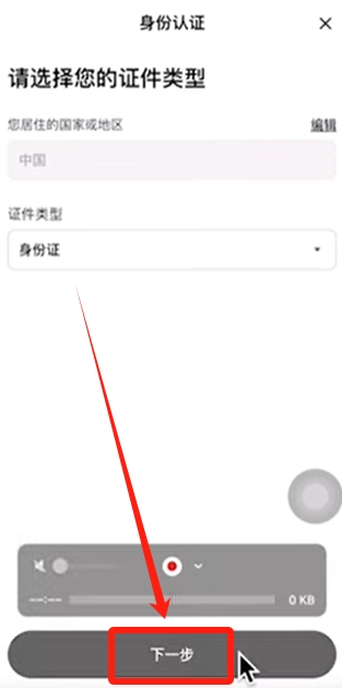 选择居住地/国家为“中国”,证件类型有两种,一个是身份证,一个是护照。推荐大家使用身份证。点击【下一步】。