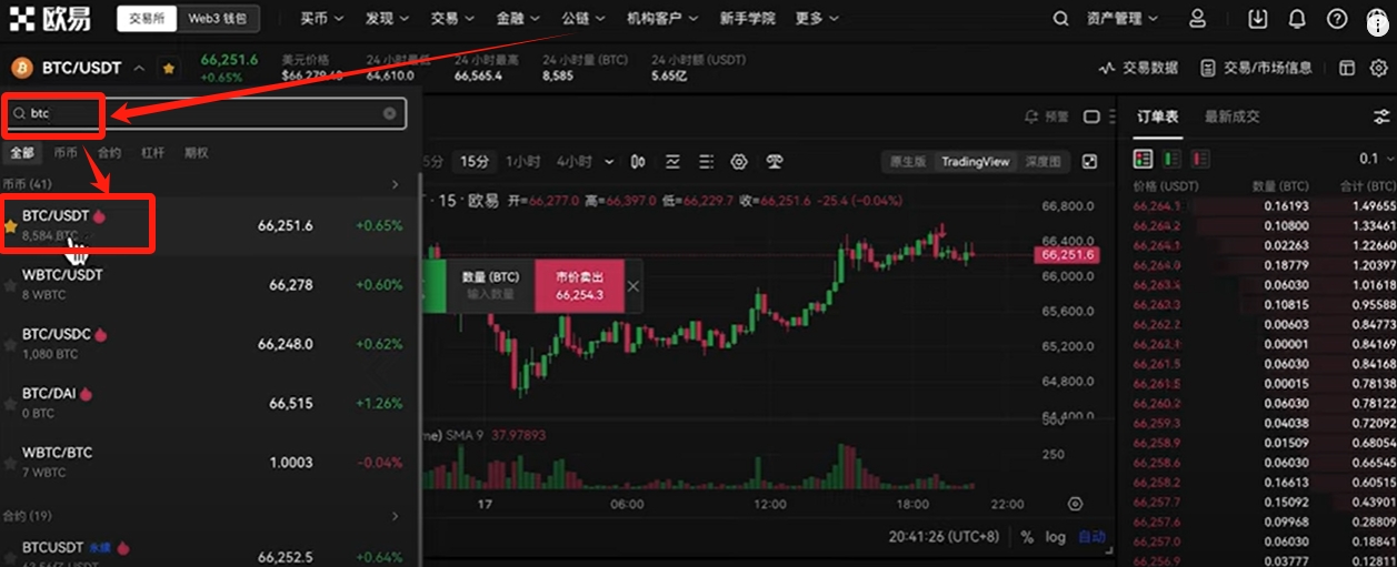 同样选择“BTC/USDT”的交易对。