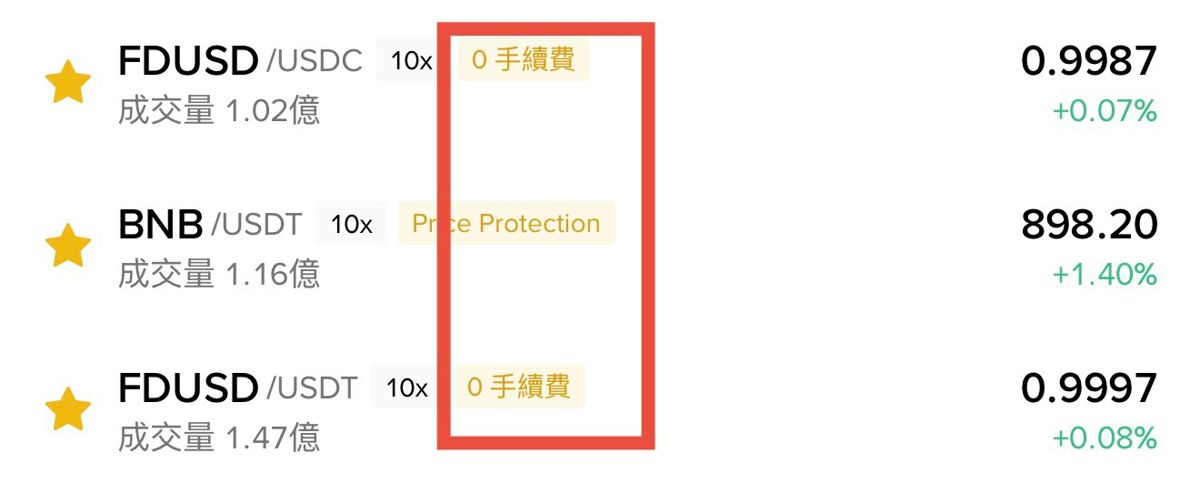 至截稿为止,有一些优惠活动,像是FDUSD 是「免挂单方手续费」;另外有一些稳定币交易对,也是免手续费的。
